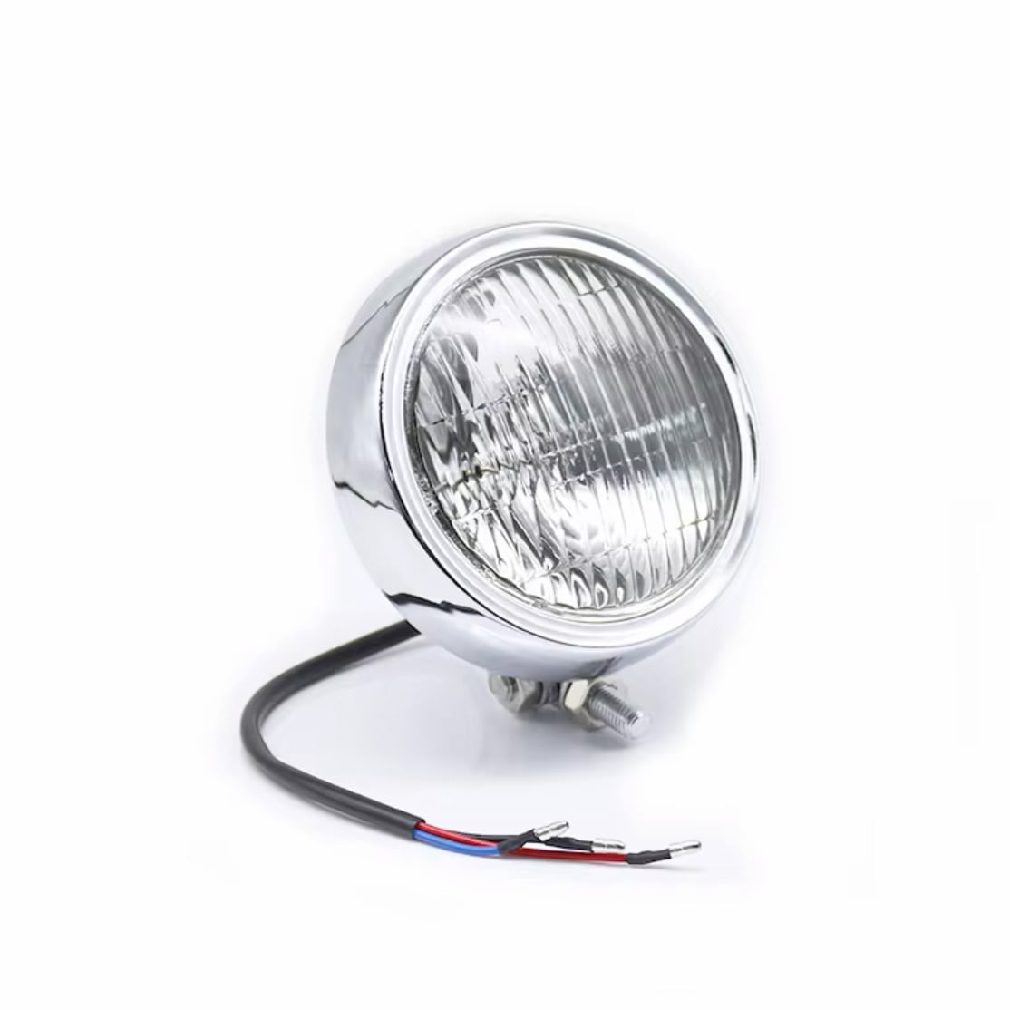 クロームメッキとブラックメッキでそれぞれクリアレンズとイエローレンズがございます。スッキリしたカスタムに適したサイズ感です。ハイ、ローの12Vバルブ式です。