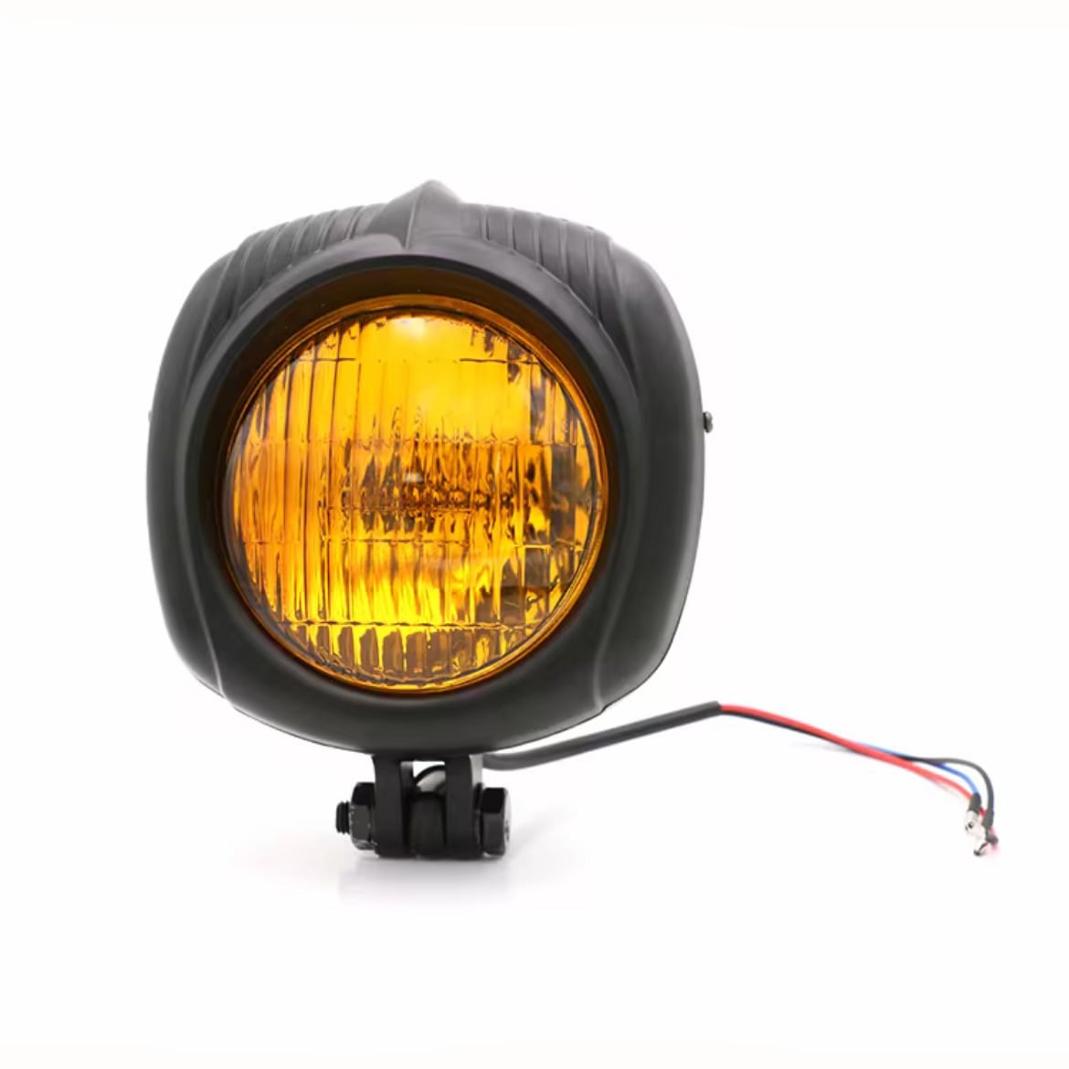 クロームメッキとブラックメッキでそれぞれクリアレンズとイエローレンズがございます。スッキリしたカスタムに適したサイズ感です。ハイ、ローの12Vバルブ式です。
