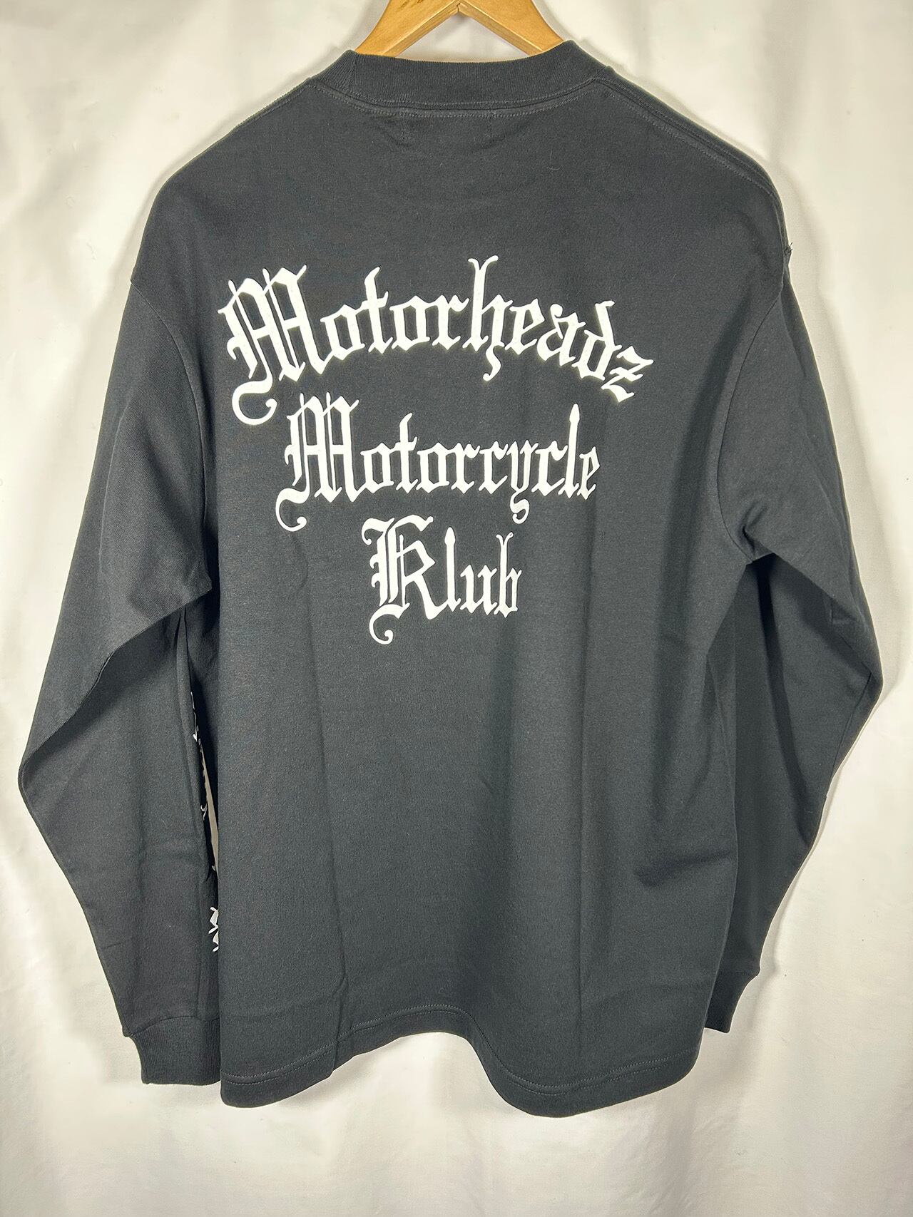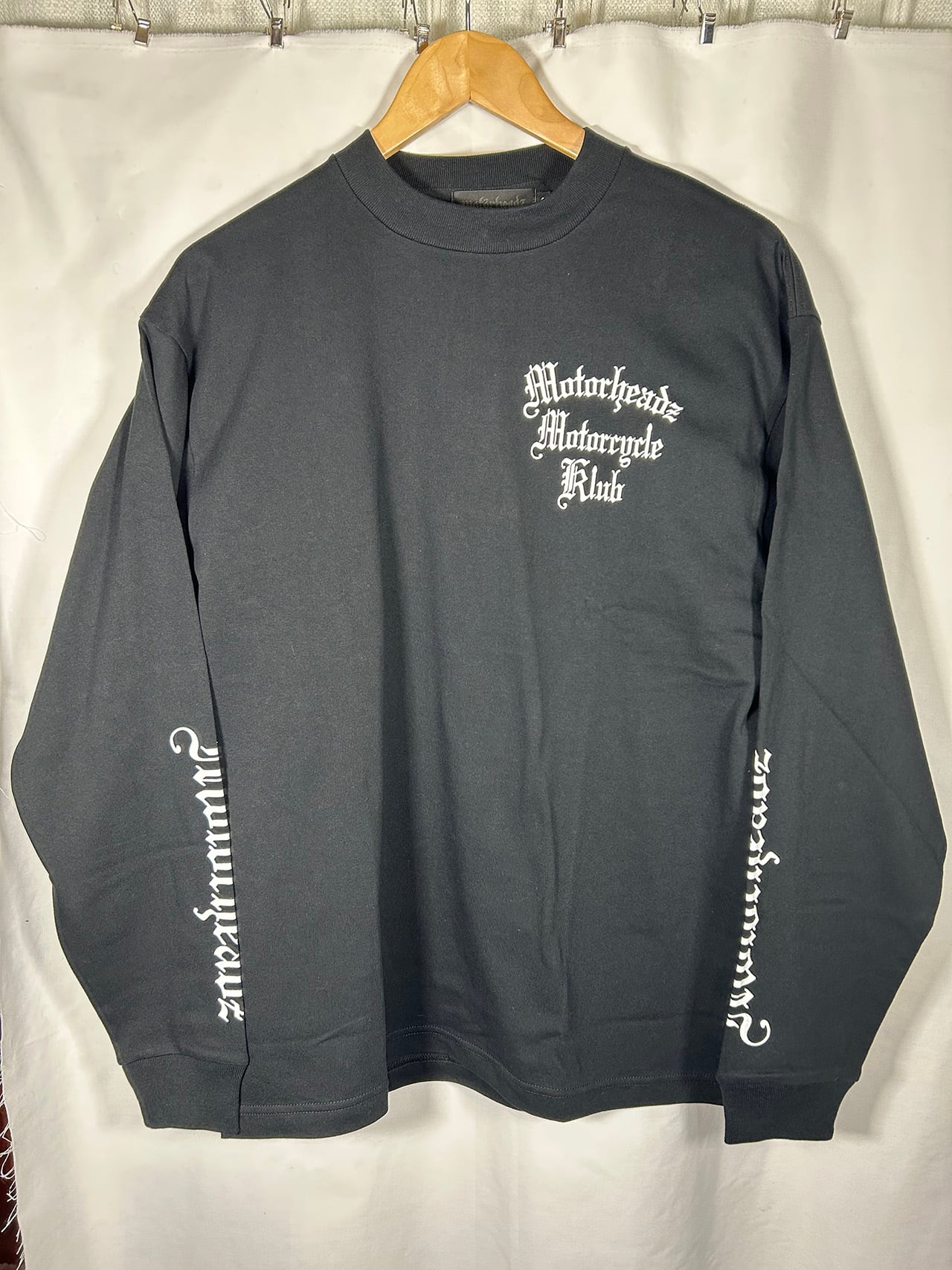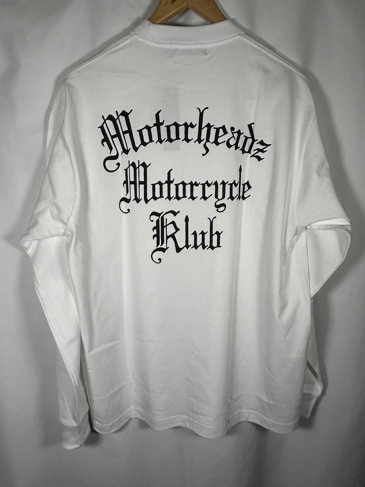 モーターヘッズのオールドイングリッシュロゴのロンTです。袖にもプリント施し重ね着しても存在感があります。7.1オンスのヘビーウエイトボディを使用。ホワイトとブラックの2色展開です。