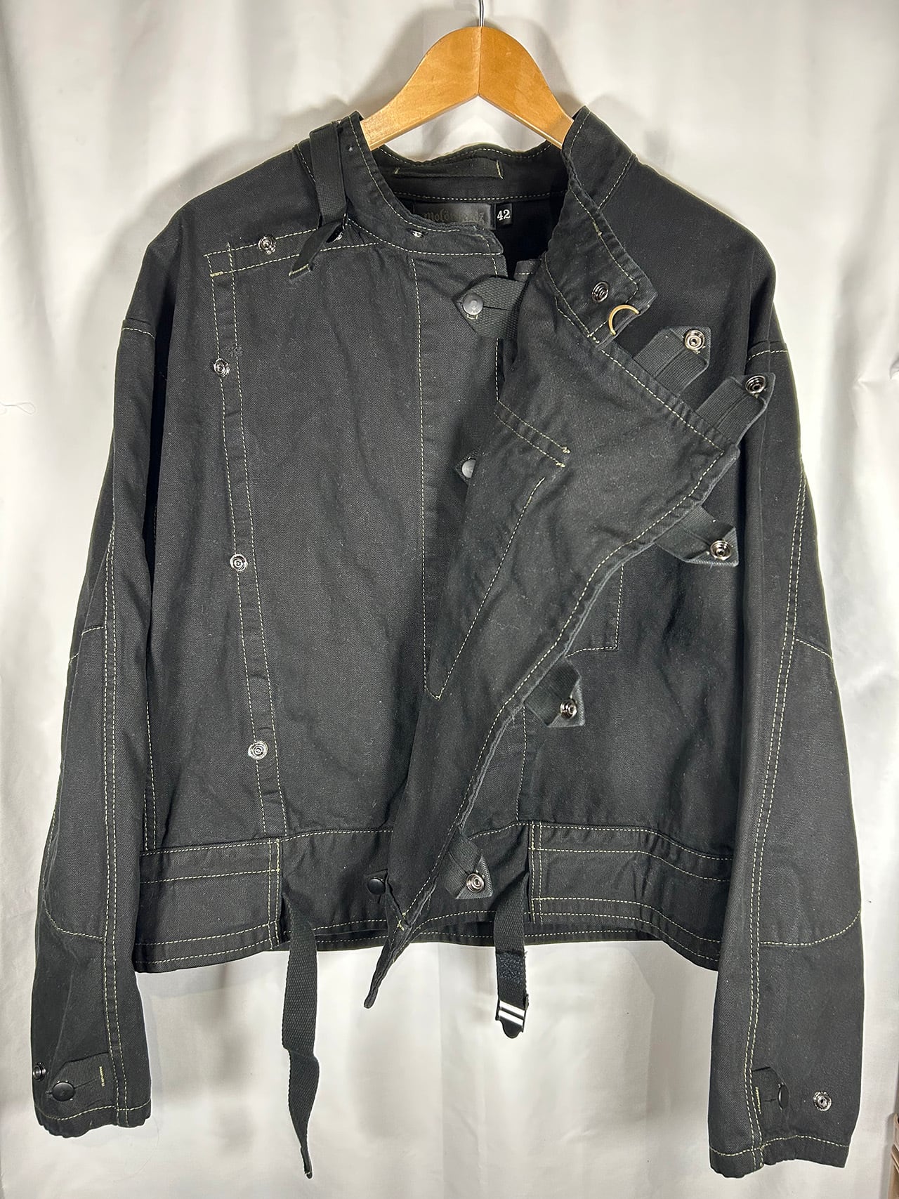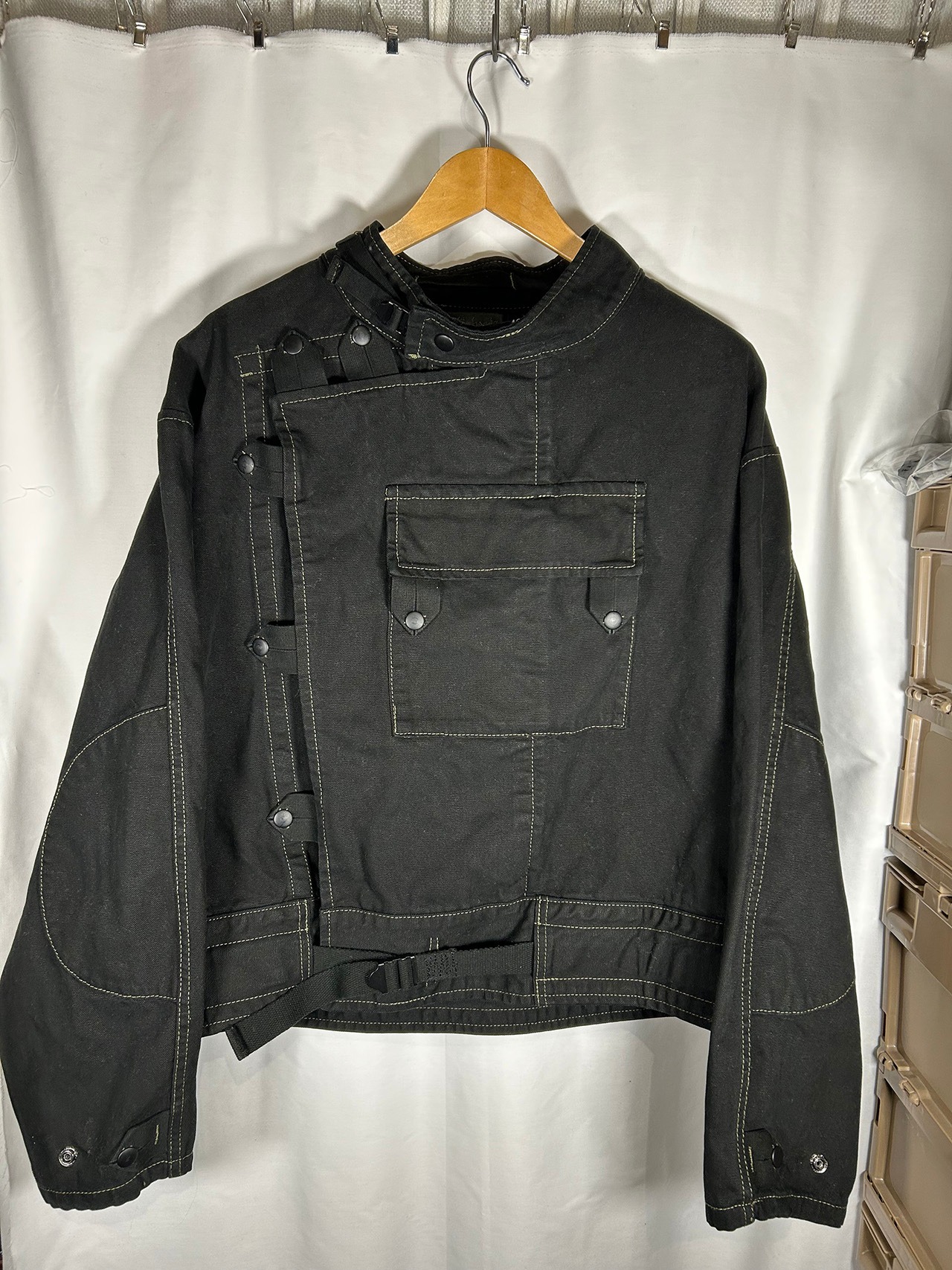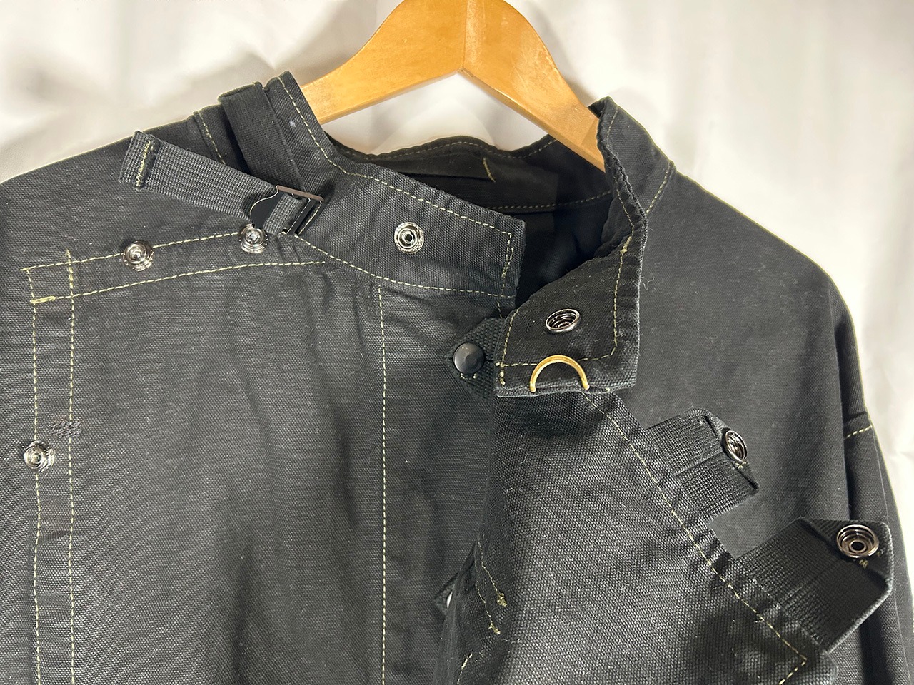 Motorheadzにてスウェーデン軍の古着をリメイク。黒染めしボタンを全てドットボタンに改修し気易さを重視。唯一無二のジャケットです。古着のため多少のダメージもありますが全て補修を施しております。