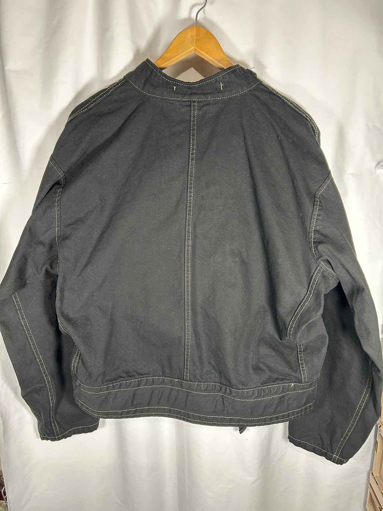 身幅76.0cm、着丈61.0cm、裾幅58.0cm、袖丈59.0cm、肩幅58.0cmのLサイズ相当になります。一点ものなので是非ヨーロピアンモーターサイクルジャケットを堪能して下さい。