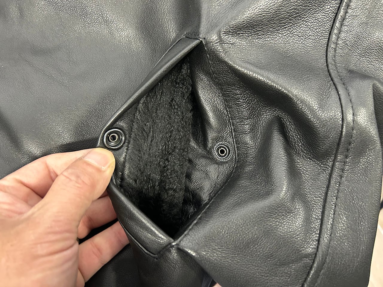 シープレザーはしなやかで軽く、どんな体勢でもストレスなく柔らかい素材です。もちろんレザーなので防寒性も確保しております。