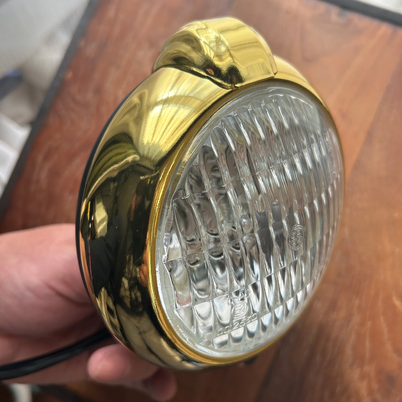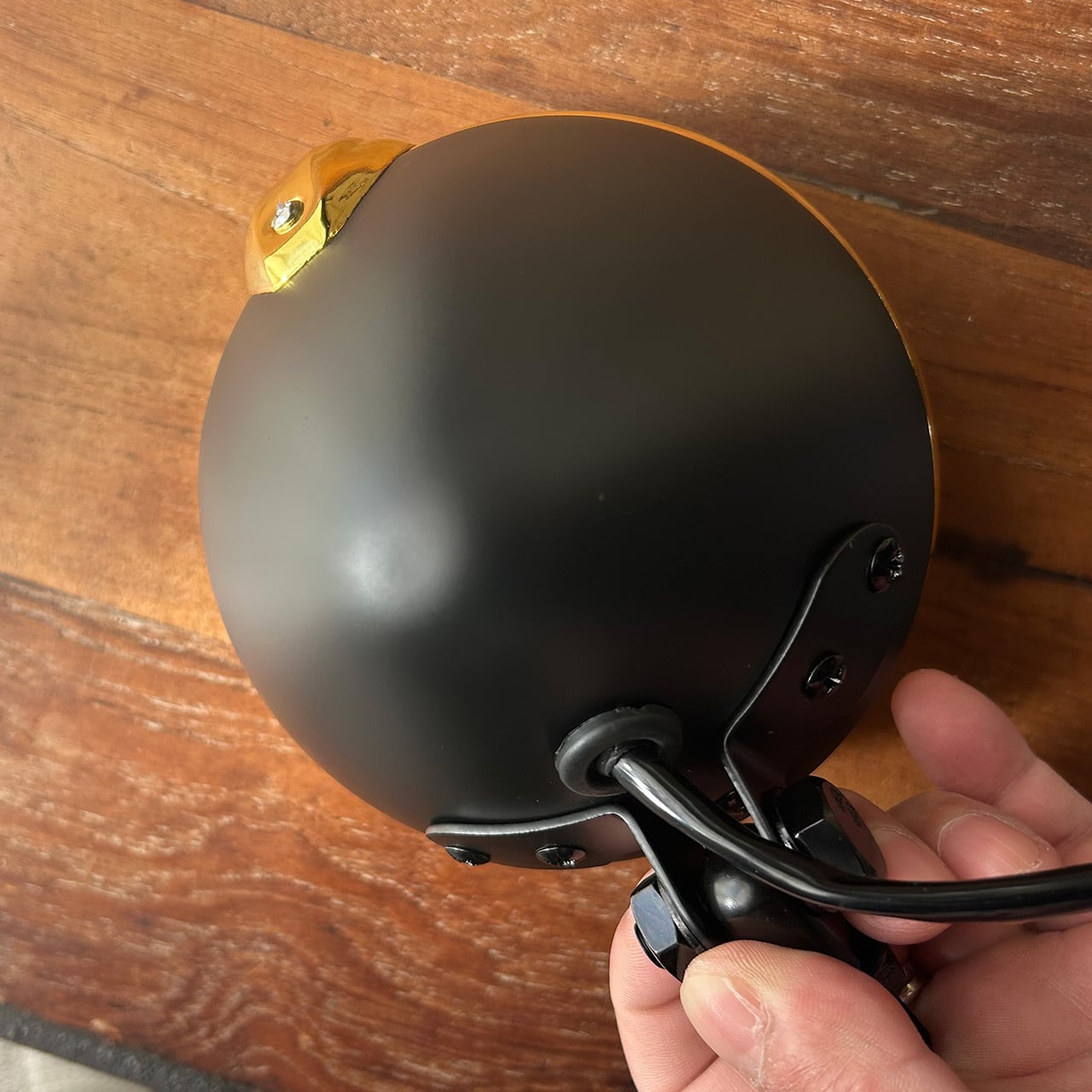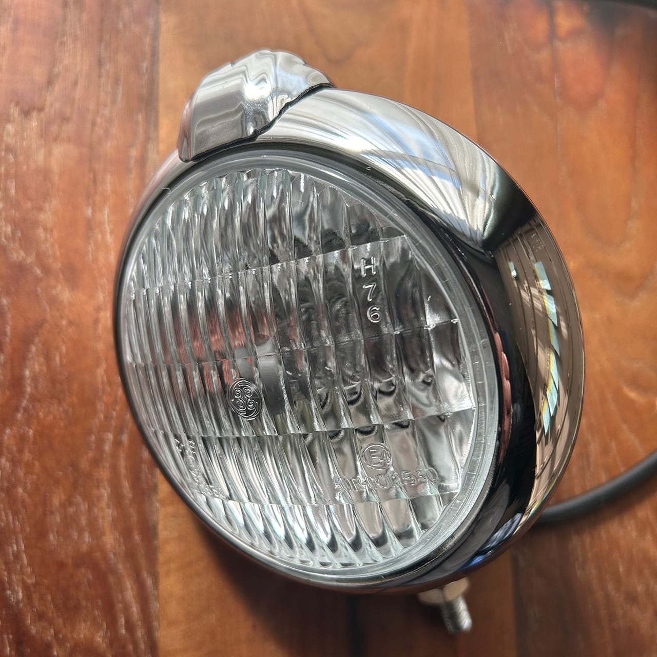 王道のヴィンテージ感がありスッキリしたカスタムに適したサイズ感です。こちらはボトムマウントになり、本物でもサイドマウントばかりなのでおすすめのです。インジケーターの色は本物と違いブルーとなります。ハイ、ローの12Vバルブ式です。