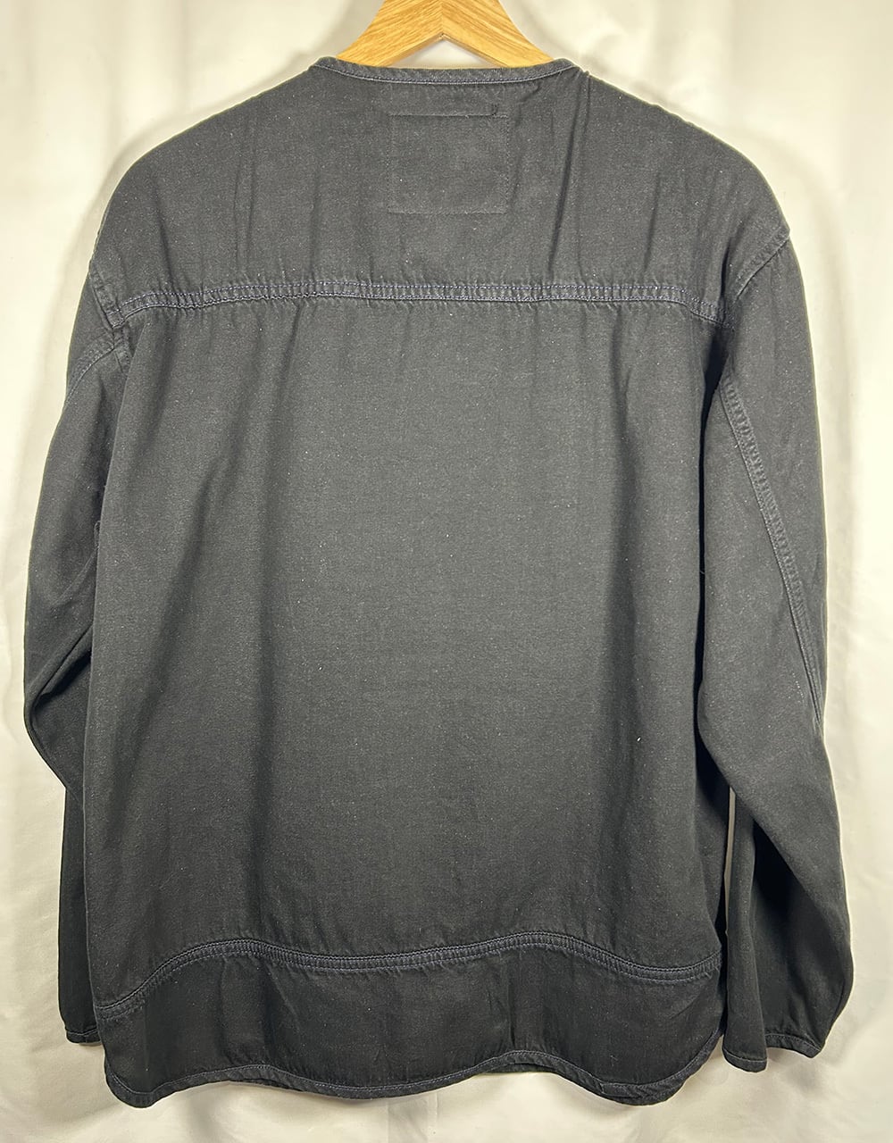 インディゴブルーの生地を反応染料でブラックに染め上げたディープネイビーブラックなっております。